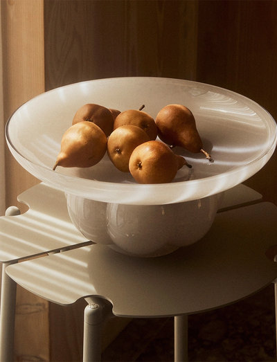 Skulpturel elegance møder hverdagsfunktion i UVA-glasskålen. Med sin blødt buede silhuet, inspireret af druers naturlige former, tilfører denne glasskål en følelse af bevægelse og ynde til ethvert rum. Den er fremstillet af glas i høj kvalitet med en raffineret finish og fungerer både som dekorativt objekt og funktionelt element – – ideel til at vise frugt frem, servere eller blot løfte indretningen med sin organiske form. Som en del af UVA-serien er den designet til at give
