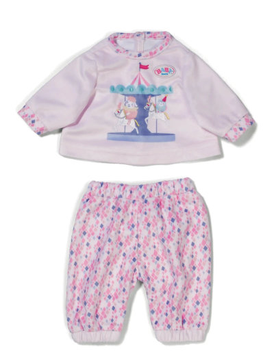 Dette søde dukkepyjamas holder enhver 43 cm dukke dejligt varm. Det farverige design spreder glæde på børneværelset, mens det bløde materiale skaber hygge. Perfekt til afslappede krammeaftener og søde dukkedrømme.