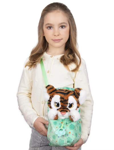 Nye dyrebabyer er ankommet til Baby Paws! Denne tiger er så sød! Han har sit eget personlige tilbehør: en svøbepose og en sut. Hvis du giver ham sutten ved sengetid, vil du høre, hvordan han falder i søvn med de mest bedårende søvnlyde. Hvor nuttet! Du kan tage din nye ven ud af svøbeposen for at lege med ham, eller lade ham blive i den, så du kan tage ham med dig overalt. Han har brug for, at du passer på ham – og giver ham en masse kys og kram!