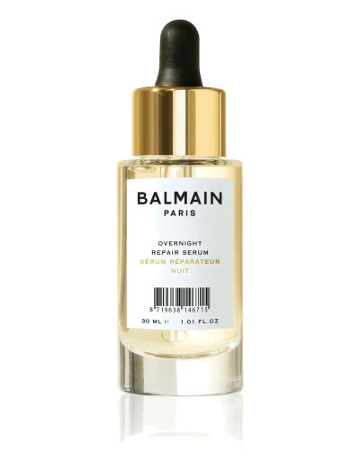 Overnight Repair Serum fra Balmain Paris Hair Couture er en ikonisk, rig hårserum designet til intensiv natlig reparation. Den unikke, koncentrerede formel reparerer og styrker håret, samtidig med at den reducerer synlige tegn på skader. Beriget med naturlige olier og ekstrakter beskytter serummen mod krus og spaltede spidser.