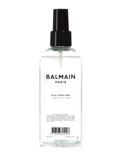 Balmain Hair Couture's Silk Perfume er en nærende hårspray, der efterlader håret med en blød og silkeagtig finish. Formlen er beriget med ren arganolie og silkeprotein, som stimulerer fugtbalancen og sikrer optimal fugtighedsbevarelse i håret. Disse ingredienser beskytter beskadiget, tørt og svagt hår mod ydre påvirkninger og giver håret en langvarig silkeagtig glans.