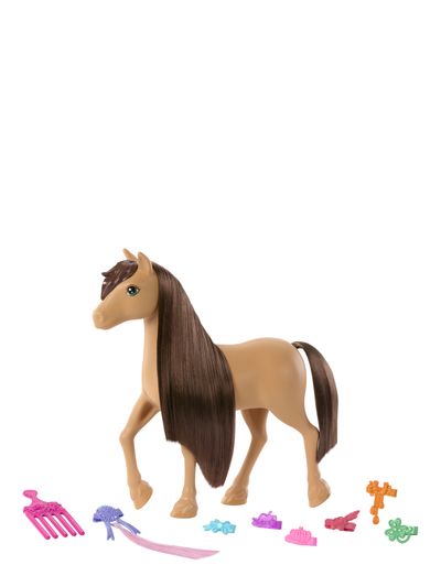 Inspired by the Netflix series Barbie Mysteries: The Great Horse Chase, these toy horses are ready to race into playtime. Choose from Barbie 'Malibu' and Barbie 'Brooklyn' doll's best pony friends, Tornado and Pepper. Each toy horse has an extra-long mane and comes with a hair extension, comb, and six adorable hair clips. Each sold separately, subject to availability. Doll not included. Colours and decorations may vary.
