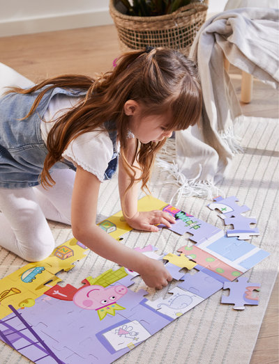 Gurli Gris puslespil - som Teddy - Et hyggelig puslespil med Gurli Gris og Freja Får som leger på Gurlis værelse. Du skal pusle de 40 brikker sammen. Her får børn mulighed for at samle puslespil med store brikker, der er nemme at holde om og placere. Puslespillet kommer i en unik kuffert, så barnet kan tag det med på tur samt det vil pynte på et hvert børneværelse. Kufferten er lavet i tykt karton og af meget god kvalitet som kan holde i mange år. Puslespil er en rigtig god træning og udvikling du kan give dit barn. Når vi lægger puslespil, bruger vi begge hjernehalvdele, da vi både skal visualisere/forestille os, hvordan puslespillet skal se ud og samtidig finde op og ned på brikkerne og dermed få hele puslespillet til at gå op. Der er mange fordele ved at lægge puslespil heriblandt udvikling af barnets øje-hånd koordination, grovmotorikken, finmotorik, farve genkendelse, figur forståelse, hukommelse, problemløsning, tålmodighed, sociale færdigheder og afslapning og fordybelse. For de