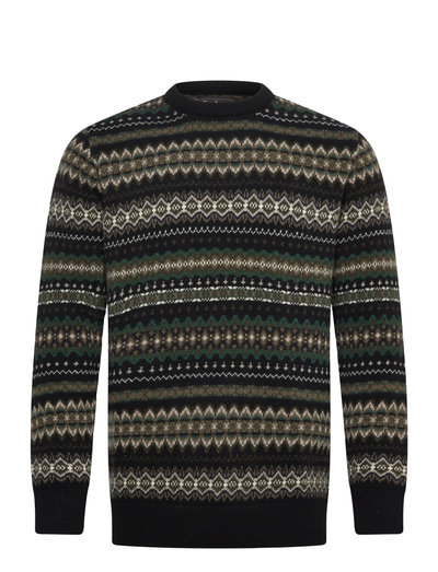This crew-neck sweater is knitted with a colourful Fair Isle pattern framed by contrast ribbing at the collar, hem and cuffs. Crafted in super-soft lambswool, this distinctive piece is finished with a signature flag label at the side seam.