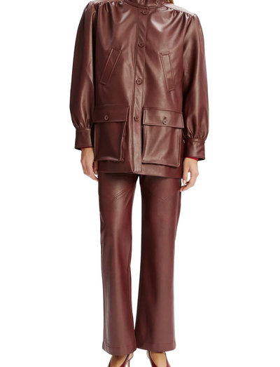 Denne jakke har en markant, boxy pasform og er fremstillet i et uimodståeligt, glat materiale. Designet er fuld af detaljer, herunder store lommer, lange ærmer med volumen og en standkrave samt bærestykke foran og bagpå. Fuldforet for ekstra komfort.