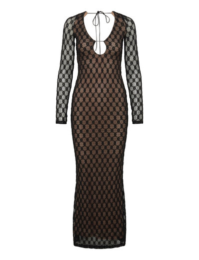 Denne midi-kjole er fremstillet i et moderne mesh-stof og har en sløjfe foran samt en markant åben ryg, der sikrer en mindeværdig silhuet.