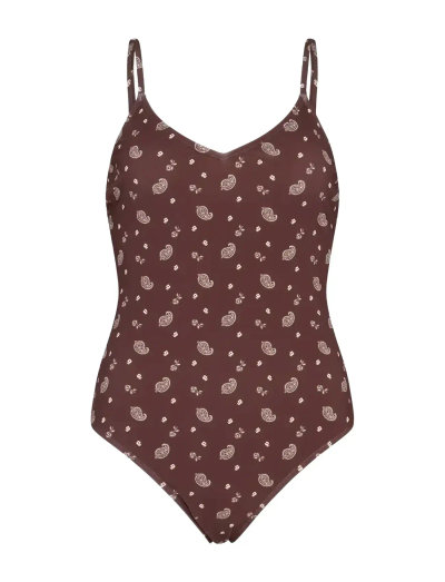 Denne badedragt har et delikat paisleymønster og en flatterende silhuet. De slanke stropper sikrer en behagelig pasform, hvilket gør den ideel til svømning eller solbadning.