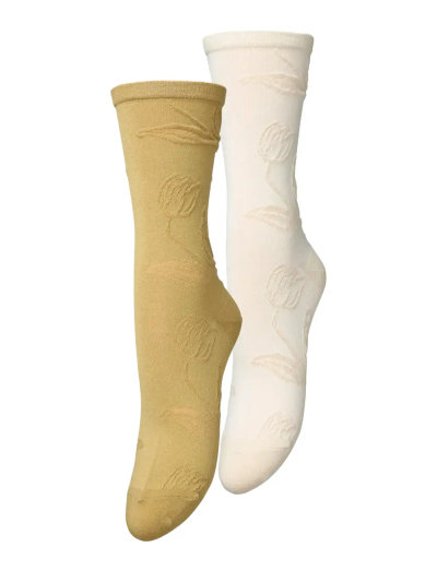 Dette sæt giver et strejf af subtil elegance og indeholder to par sokker med et delikat blomstermønster. Disse sokker giver en behagelig pasform, perfekt til hverdagsbrug eller til at tilføje et raffineret touch til ethvert outfit.