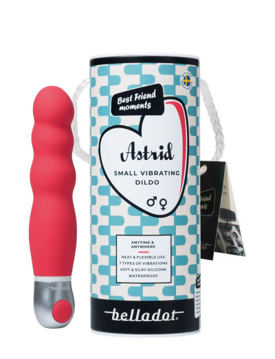 Belladot Astrid er en slank, vibrerende dildo med syv forskellige programmer – fra blid til intens – klar til at tage dig derhen, hvor du vil, når du vil. Med én enkelt knap styrer du både styrke og rytme, så du kan fokusere fuldt ud på følelsen. Astrid er genopladelig og giver op til 45 minutters brug.