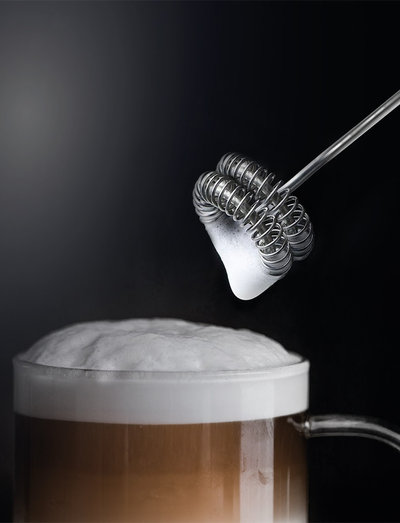 TRE HASTIGHEDSNIVEAUER, Skift hastighed efter ønske med en enkelt knap på håndtaget. USB-OPLADER, indbygget og let genopladeligt batteri. UDSKIFTELIGE PISKEHOVEDER, Afhængigt af tilberedningen kan du vælge enten det dobbelte piskeris eller ballonpiskeriset for at opnå de bedste resultater. GARANTERET RESULTAT, med mælk og de fleste vegetabilske drikke*.