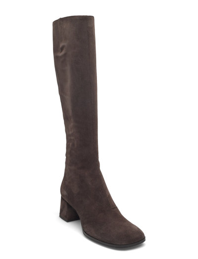 Elegant silhuet kendetegner denne høje støvle, der er fremstillet med en høj blokhæl og en rund tå for et tidløst look. Den håndlavede konstruktion sikrer kvalitet og sans for detaljer.