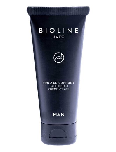 Man Pro Age Comfort Face Cream er en creme designet til mandehud. Den giver en frisk og behagelig følelse samtidig med at den effektivt mindsker synlige porer og fine linjer. En rig creme, der også egner sig godt som plejende aftershave. Multifunktionel formel, der indeholder mineralbioelementer, glycyrrhizinsyre, alpha-glucan oligosaccharide, menthyl lactate, allantoin, vitamin B3, sheasmør og Cityfilter. Du kan med fordel kombinere denne creme med Man Age Revitalizer Face and Eye Serum-cream under øjnene og som serum. Vegansk formel.