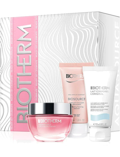 Aquasource Cica Nutri Cream Holiday Set har en intensiv fugtgivende effekt på din hud. Sættet indeholder: Aquasource Cica Nutri Cream 50 ml + Biosource Softening Foaming Cleanser 50 ml + Lait Corporel L'Original 50 ml.