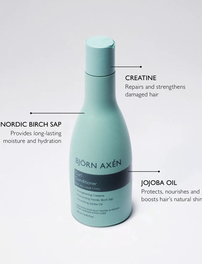 Dybt fugtgivende balsam, beriget med Kreatin, Nordisk Birkesaft og Jojobaolie, der reparerer, fugter og nærer håret, så det bliver glansfuldt, spændstigt og med definerede krøller.