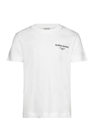 Denne kortærmede t-shirt har en klassisk rund hals, der gør den behagelig at have på. Den lige kant forneden og den almindelige pasform skaber en tidløs silhuet, der fuldendes med en diskret logo-detalje på brystet.