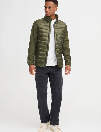 Denne hybridjakke har et quiltet frontpanel, der giver varme og ubegrænset bevægelsesfrihed. Designet har softshell-ærmer og sidepaneler for øget fleksibilitet, mens den fulde lynlås og høje krave giver justerbar dækning.