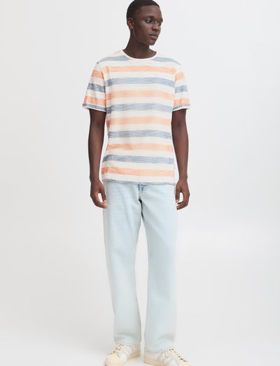Blend BHJELANI tee er en stilful og komfortabel stribet t-shirt. Den har en klassisk rund hals og korte ærmer, hvilket gør den perfekt til hverdagsbrug.