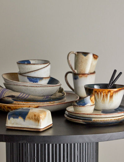 Jules-skålen fra Bloomingville er et smukt håndlavet stykke stentøj med en unik flerfarvet glasur. Du kan bringe en kunstnerisk touch til dit bord med denne kunstneriske kombination af ristede karrytoner blandet med dyb oceanblå. Tåler opvaskemaskine og mikroovn. Pakke med 4. D22xH5 cm.