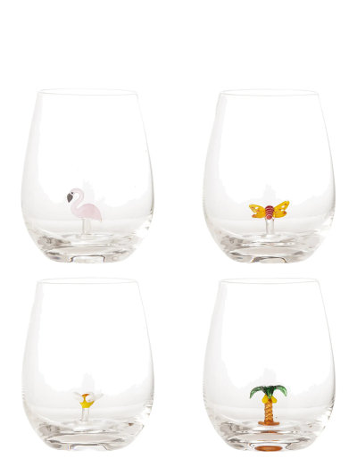Misa Drikkeglassene fra Bloomingville er et sæt af fire smukt udformede glas, hver dekoreret med en unik, håndlavet figur i bunden. Figurerne inkluderer en flamingo, en sommerfugl, en blomst og en palme, der hver tilføjer et legende og personligt præg til din servering. De håndlavede detaljer gør hvert glas helt unikt.