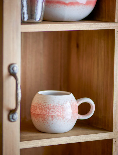 Paula Kruset fra Bloomingville er lavet af stentøj med en reaktiv glasur i orange og lyse nuancer. Glasurens naturlige variationer sikrer, at hver kop er unik med sit eget udtryk. Hanken giver et komfortabelt greb og gør kruset både praktisk og stilfuldt.