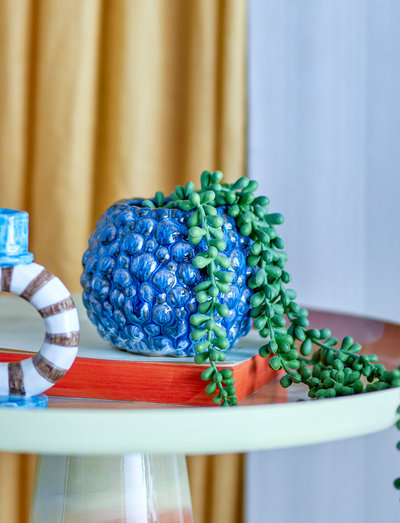 Susannah Urtepotteskjuleren fra Bloomingville er glaseret i en dyb blå farve, i forskellige nuancer. Urtepotteskjuleren er perfekt til at vise grønne planter, samtidig med at den skaber et karakteristik look til indretningen. Glasurens natur medfører, at der kan forekomme variationer i farven.