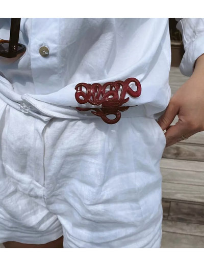 Hold dit hår stilfuldt på plads med denne iøjnefaldende hårklemme. Ordet “Love” er legende stavet i en kursiv, skulpturel form, hvilket gør den til en charmerende tilføjelse til enhver frisure.
