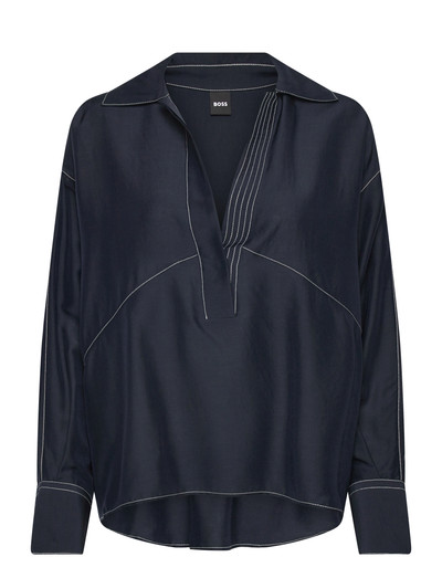 Denne skjorte har en moderne, oversized silhuet og er fremstillet af et blødt, halvtransparent materiale. Kontrastfarvede stikninger giver et eksklusivt præg, hvilket gør den ideel til at matche med denim for et afslappet, men stilfuldt look.