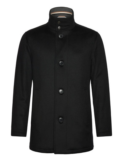 Denne frakke er fremstillet af uld og har knaplukning samt et lagdelt design med et vatteret inderpanel. En alsidig beklædningsgenstand til køligere vejr.