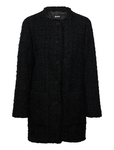 Opgrader din overtøjskollektion med denne teksturerede jakke, der har knaplukning foran og diskrete forlommer. Det kraveløse design tilføjer et moderne touch, hvilket gør den til et alsidigt stykke tøj til lag-på-lag.
