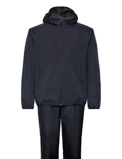 Hold dig tør og komfortabel under udendørs aktiviteter med dette træningssæt. Sættet består af en jakke med fuld lynlås og hætte samt matchende bukser, og det giver beskyttelse mod elementerne. Det lette materiale sikrer god bevægelsesfrihed, hvilket gør det ideelt til sport og fritid.