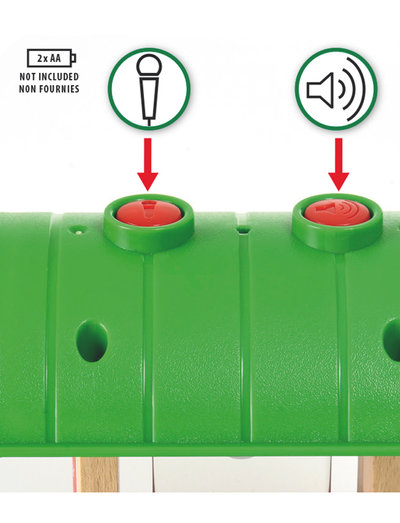 Hvem siger, det ikke kan være sjovt at vente på toget? Denne smarte lille togstation er en ny version af BRIO’s meget populære optag og afspil-funktion. Tryk på knappen og tal, tryk på den anden for at høre, hvad du lige har optaget. “Testing, testing! Hvem vil annoncere det næste tog, der ankommer på stationen?”. Incl. figur.