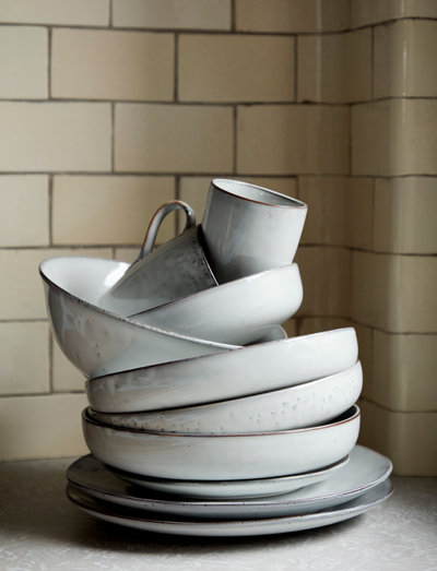 Hvert element er færdiggjort i hånden og har unikke variationer i både form, farve og glasur.