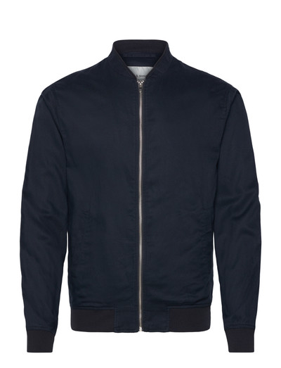 Denne bomber-inspirerede jakke er fremstillet i en blanding af tencel, hør og bomuld, og har tone-i-tone ribstrikkede detaljer ved manchetter, kant og krave. Den har en sølvfarvet metal lynlås som lukning, to forlommer i taljen og en indvendig brystlomme.
