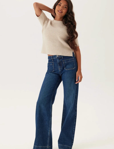 Disse jeans har en flatterende silhuet med brede ben, der giver en stilfuld og behagelig pasform. Designet har funktionelle forlommer, der tilføjer et praktisk touch til dette moderigtige stykke.