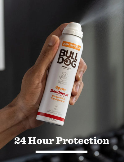 Bulldog Bergamot & Sandalwood Spray Deodorant er en spraydeodorant til mænd udviklet til at give 24-timers beskyttelse mod dårlig lugt. Deodoranten har en forfriskende duft af naturlige ingredienser med toner af citron, appelsin og bergamot, suppleret med vanilje, sandeltræ og cedertræ. Den kombinerer det bedste fra naturen og videnskaben for en unik duftteknologi med beskyttelse mod dårlig lugt og en friskhed, der holder længe. Passer også til følsom hud.