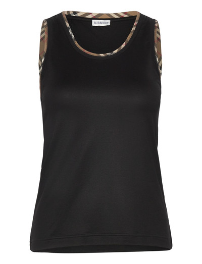Denne top har et klassisk ærmeløst design, der gør den til en alsidig tilføjelse til enhver garderobe. Halsudskæringen og ærmeåbningerne er kantet med et signaturternet mønster, hvilket tilføjer et strejf af klassisk stil til en moderne silhuet.