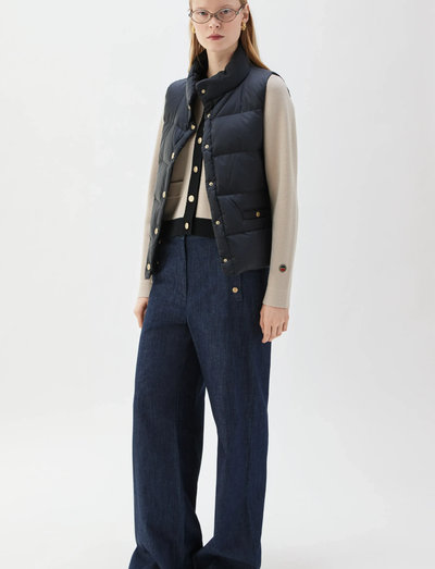 Amy Down Vest is the perfect warming layer for any look, all year round. Detailed with six golden press B-buttons and two pockets with the golden press B-button. Wear it under your knitted Busnel coat, or just as it is over your sweater.