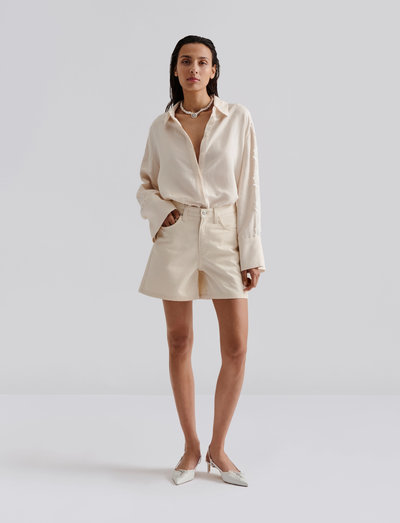 Disse denimshorts er designet med en flatterende høj talje og har praktiske for- og baglommer. De er fuldendt med en klassisk lynlås- og knaplukning, hvilket giver både stil og komfort.