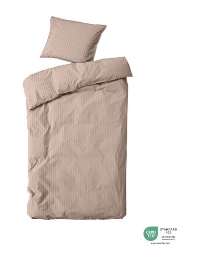 Svøb dig i sprødt og åndbart sengetøj for en god nats søvn. Dagny består af et enkelt dynebetræk med kuvertlukning og bindebånd, mens pudebetrækket kommer med en kuvertlukning. Det er lavet af OEKO-TEX® 100 certificeret økologisk bomuld i en tæt percalevævning. Du får lækkert sengetøj, der holder i mange år. En enzymvask gør stoffet endnu blødere og tilføjer diskret luksus. Denne behandling giver også et mat look til den beroligende jordtone med grønbrune nålestriber. Med dette sengesæt fra byNORD får dit soveværelse en afslappet og intim stemning, der skaber rammen om en god nats søvn.
