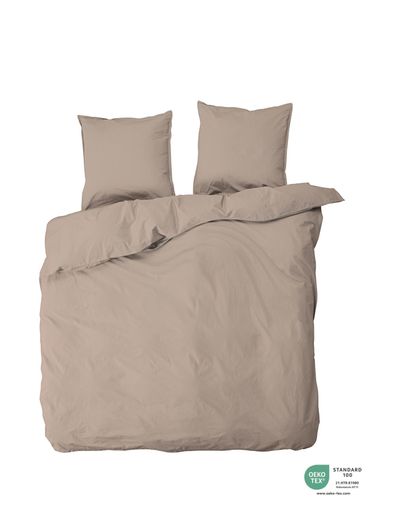 Læg dig i sprødt og åndbart sengetøj for en god nats søvn. Ingrid består af et betræk til en dobbeltdyne med kuvertlukning og bindebånd, mens de to pudebetræk er forsynet med kuvertlukning. Dette lækre, åndbare sengetøj er lavet af OEKO-TEX® 100 certificeret økologisk bomuld i en tæt percalevævning, så du får sengelinned, der kan holde i mange år fremover. En enzymvask har gjort det jordfarvede stof endnu blødere og tilføjet et strejf af diskret luksus. Med dette dobbelte sengesæt fra byNORD får dit soveværelse en afslappet og intim stemning, der sætter scenen for en god nats søvn.