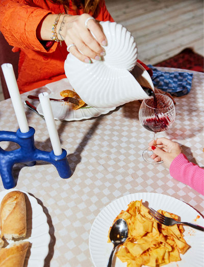 Skallernes form har mødt fantasien og er blevet til noget nyt og spændende. Jug Shelly er en stor karaffel med et unikt design. Den lyser ekstra meget takket være den blanke finish. Og den fungerer selvfølgelig lige så godt som vase. Du alene sætter grænsen for, hvad en karaffel kan blive til.