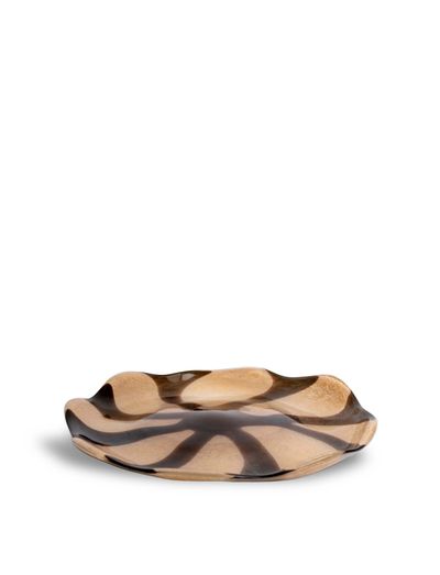 Plate Curve er en håndlavet tallerken i organiske former med fantastiske kurver i grønt og beige glas. Som dansende striber i en fortryllet verden. Den æblegrønne farve er både kølig og luksuriøs sammen med den beige. Hver tallerken er unik. Den er både dekorativ og smuk med sæsonens primeurs eller grønne æbler. Plate Curve hører til Calore-familien, hvor du også finder flere tallerkener og lanterner med fantastiske kurver.