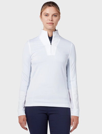 Callaway 1/4 zip chev top er et stilfuldt og funktionelt stykke sportstøj. Den er lavet af en blanding af polyester og genanvendt polyester, hvilket gør den både behagelig og holdbar. Det hurtigtørrende stof hjælper med at holde dig kølig og tør under din træning, mens den høje halsudskæring giver ekstra dækning. Det 4-vejs strækbare stof giver et fuldt bevægelsesområde, så du kan bevæge dig frit uden at føle dig begrænset.