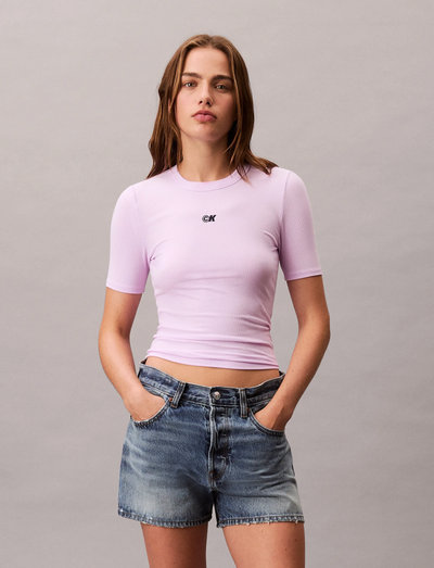 Denne kortærmede T-shirt er fremstillet med en ribbet tekstur, der giver en behagelig og stilfuld pasform. Den diskrete logo-detalje tilføjer et strejf af underspillet branding til dette essentielle stykke tøj.
