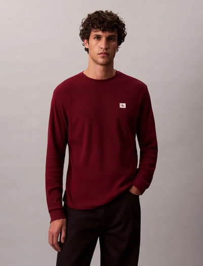 Denne langærmede T-shirt er fremhævet med en vaffeltekstur. En badge-detalje tilføjer et subtilt brand-touch. Designet med rund hals sikrer en klassisk pasform, hvilket gør den til en alsidig tilføjelse til enhver garderobe.