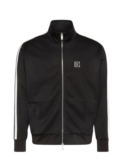 Denne træningsjakke har fuld lynlåslukning, hvilket giver mulighed for nem lagdeling og et sporty look. Designet fuldendes med stribede detaljer ned ad ærmerne og et logo på brystet.