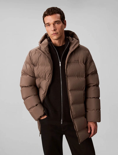 Denne lange pufferjakke giver varme og beskyttelse mod elementerne og har et quiltet design og en praktisk hætte. Den bonded konstruktion sikrer holdbarhed, mens kanaldetaljerne tilføjer et visuelt interessant element.