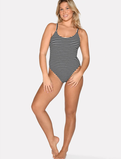 Denne badedragt har bøjle for at give støtte og en flatterende silhuet. Designet har tynde stropper og et klassisk snit.