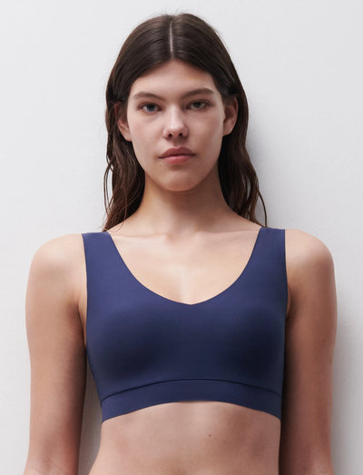 Denne trådløse bh er designet til komfort og støtte. Den har et sømløst, strækbart stof, der bevæger sig med dig. De polstrede kopper giver en naturlig form og løft. Bh'en har en V-udskæring og racerback-stropper for et smigrende look.