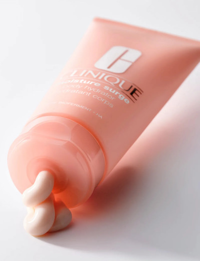 Moisture Surge Body Hydrator fra Clinique er en kropscreme, der gennemfugter huden i 48 timer. Huden efterlades velfugtet, blød og komfortabel. Cremen styrker og reparerer hudens fugtbarriere med hyaluronsyre, 1 % aloe vera bioferment, 4 % dimethicone og 5 % glycerin.
